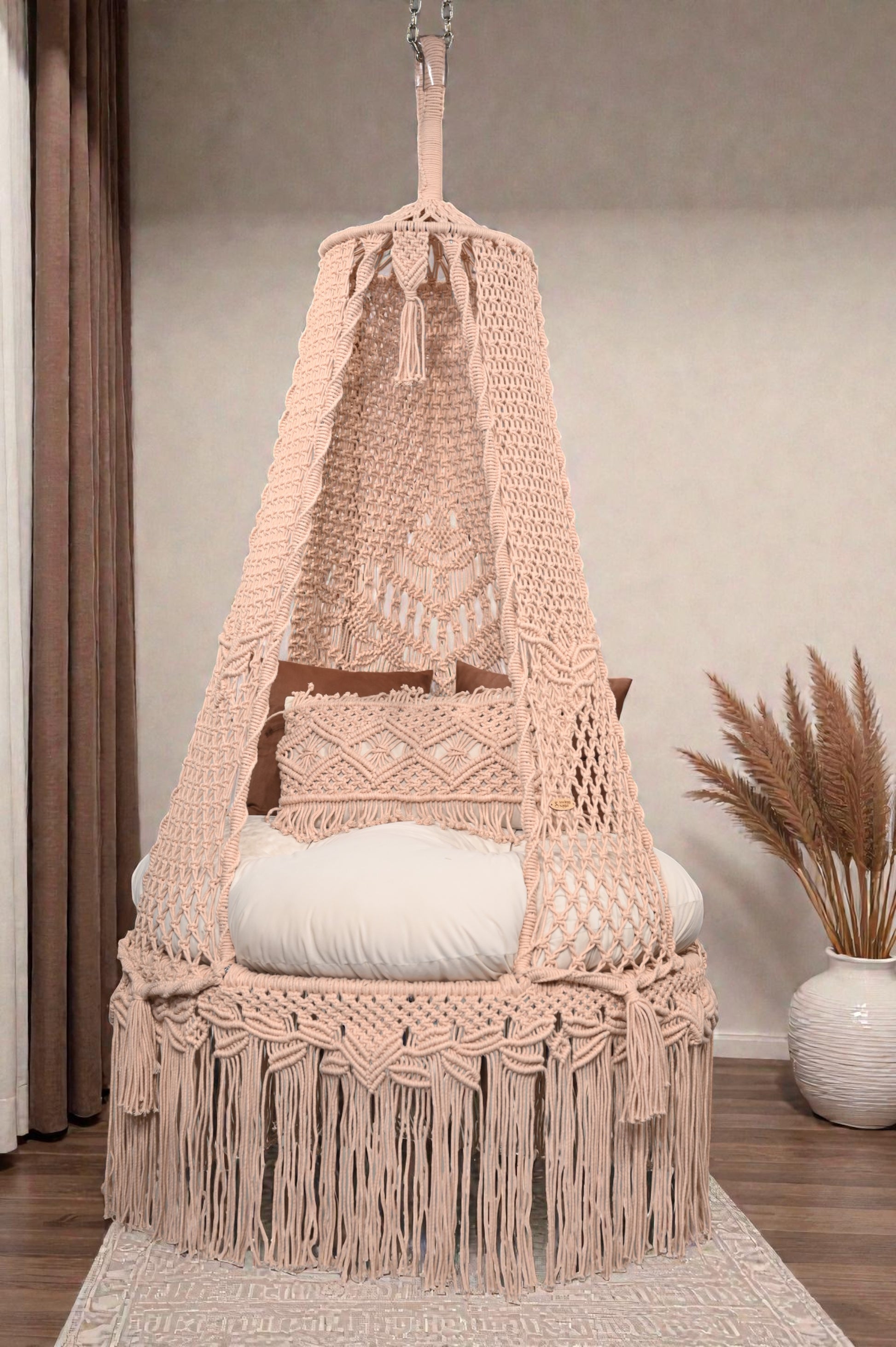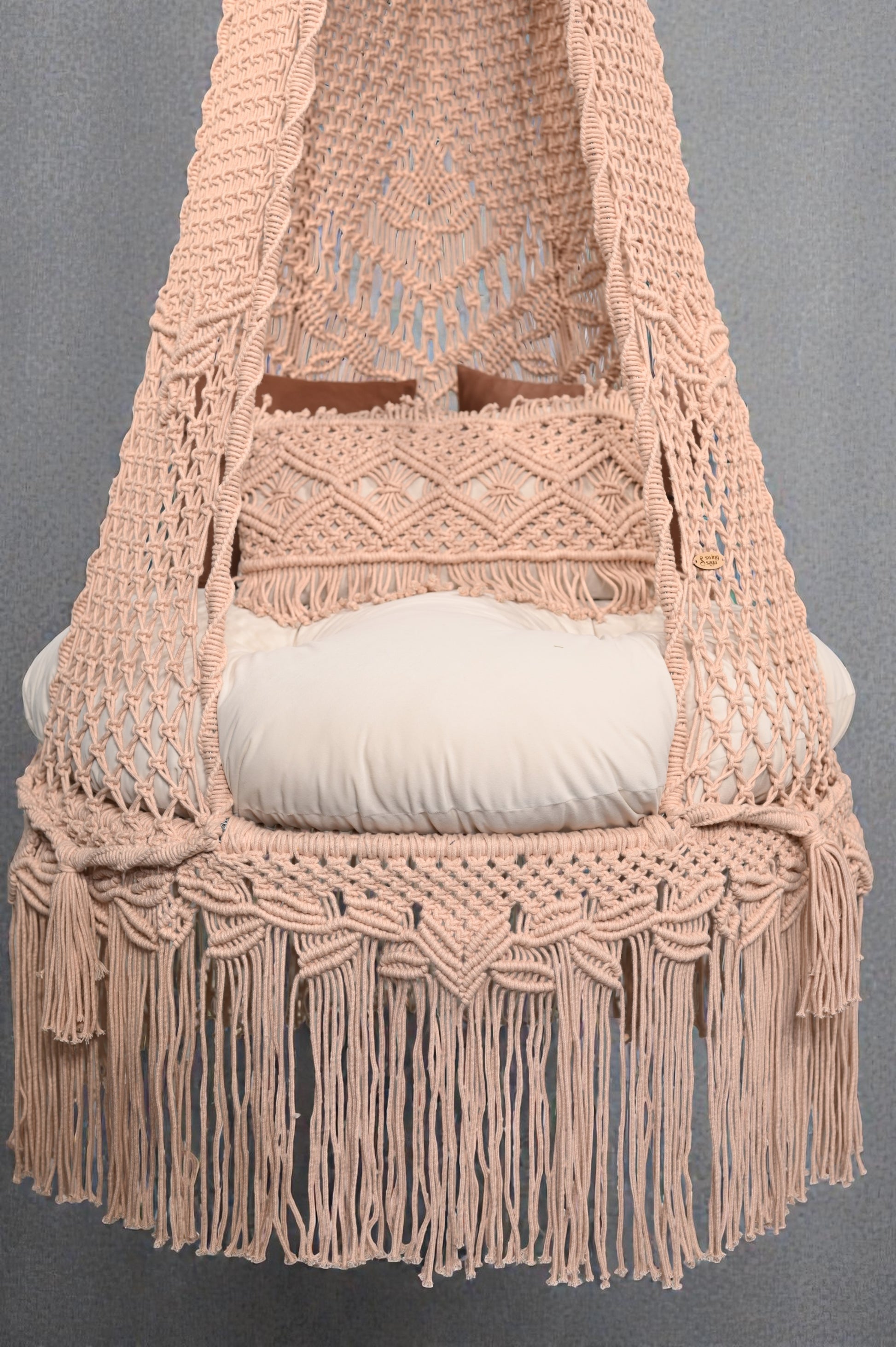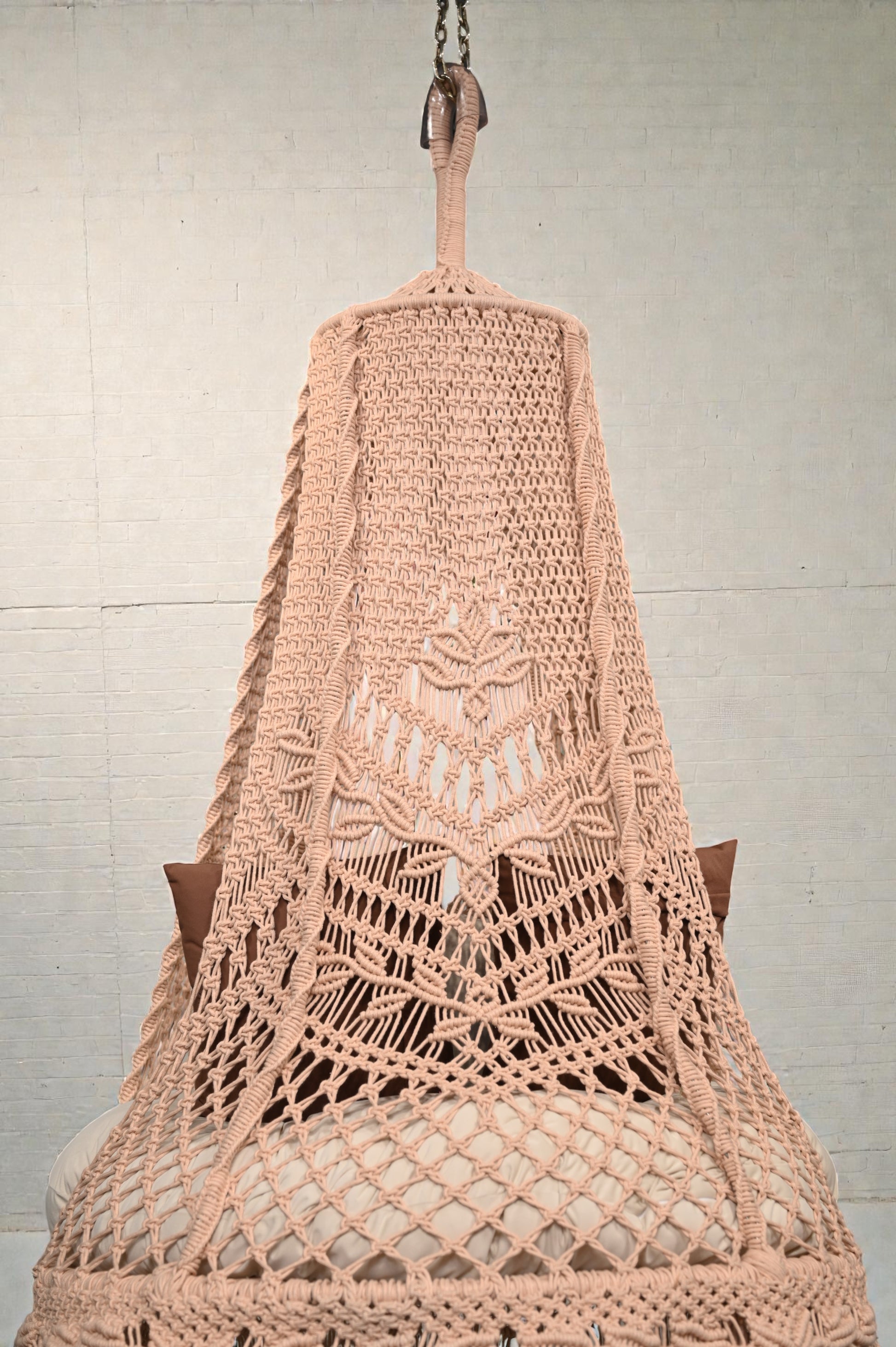 The color, Peach Clay carries the quiet depth of sun-baked stone soft, muted, and composed. The Linnea Swing is handwoven slowly, its 40” seat shaped for still mornings and evenings that ask nothing of you. Grounded in tone and gentle in movement.